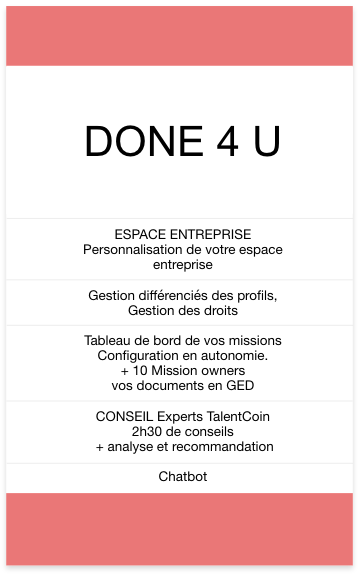 | offre*: L'offre Done For U est sans engagement et s'ajoute aux prix les frais d'accès à la communauté |